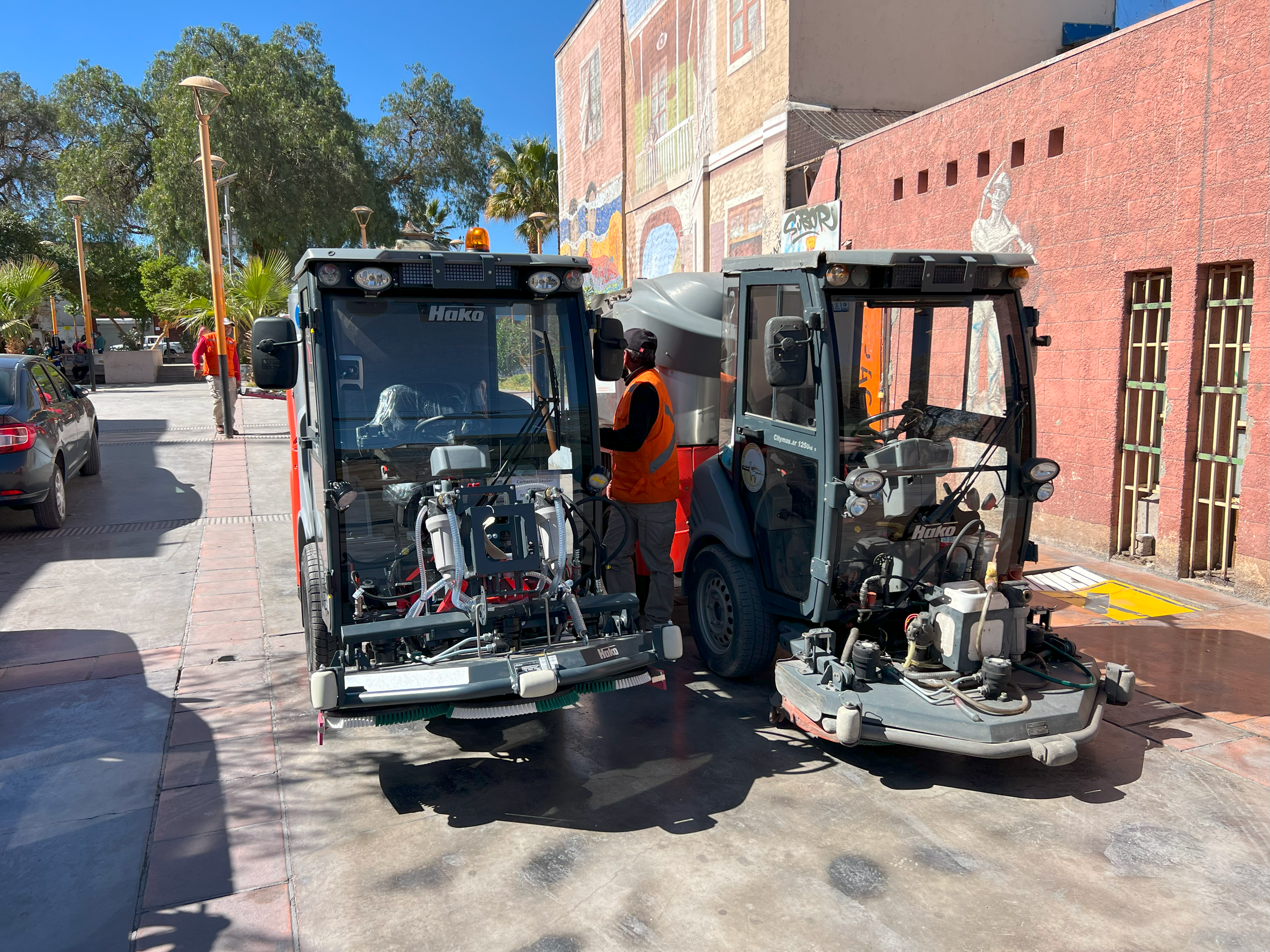 Gracias a esta máquina, las calles urbanas y plazas de la comuna estarán más limpias. Sistema de barrido + sistema de lavado.