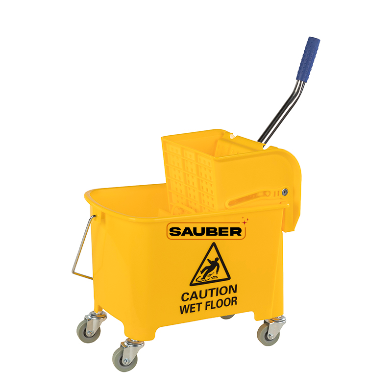 Carro estrujador para el estrujado de mopas sin necesidad de utilizar las manos gracias a su sistema de estrujado por prensa. Hecho en plástico industrial de alta resistencia.