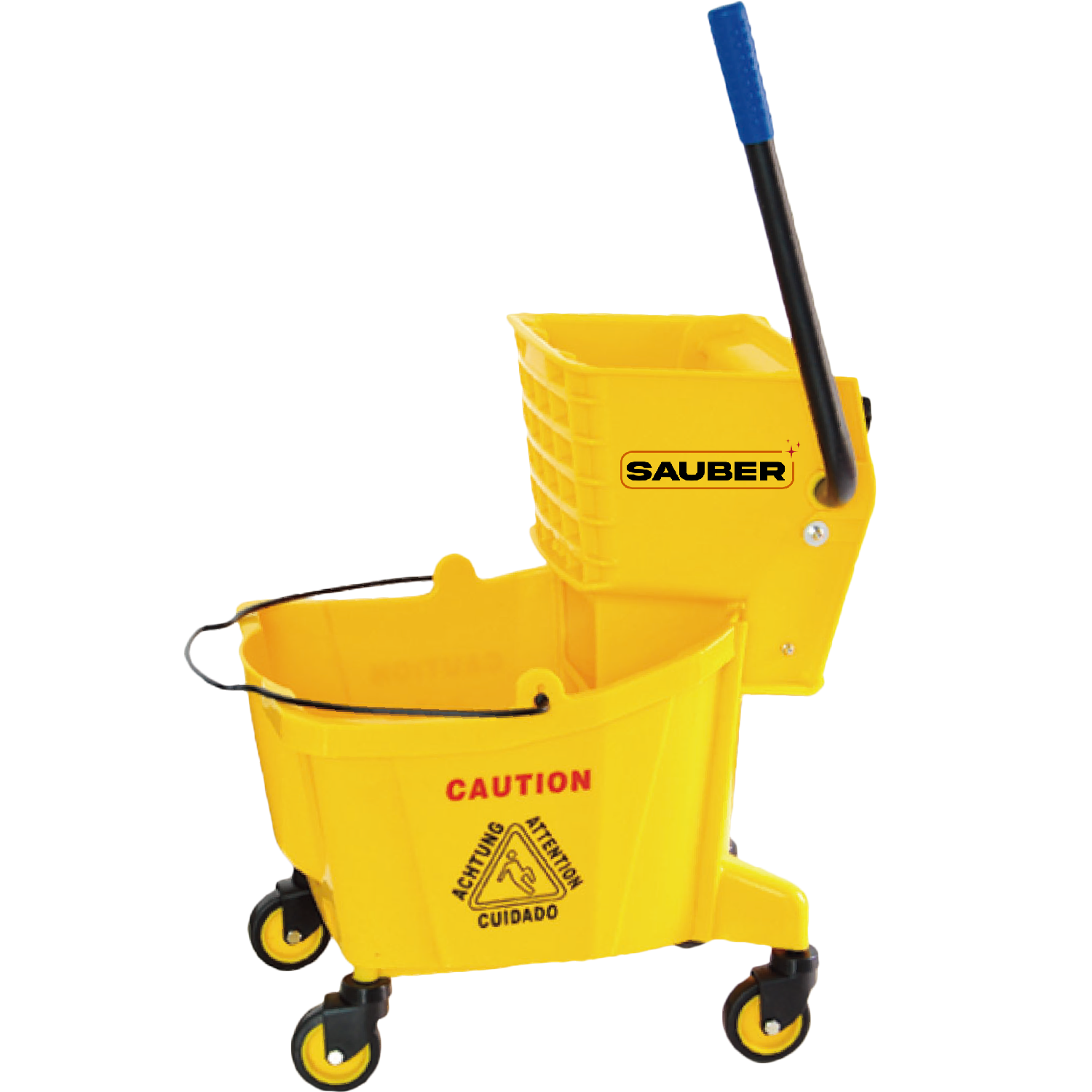 Para el estrujado de mopas sin necesidad de utilizar las manos gracias a su sistema de estrujado automático. Hecho en plástico industrial de alta resistencia.